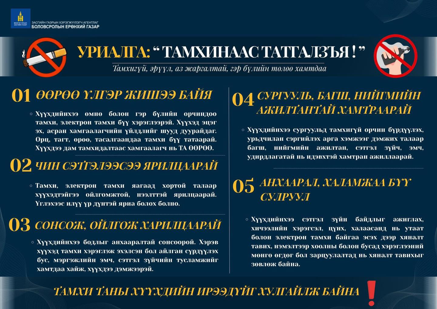 Тамхигүй, эрүүл, аз жаргалтай гэр бүлийн төлөө зөвлөмж хүргэж байна.