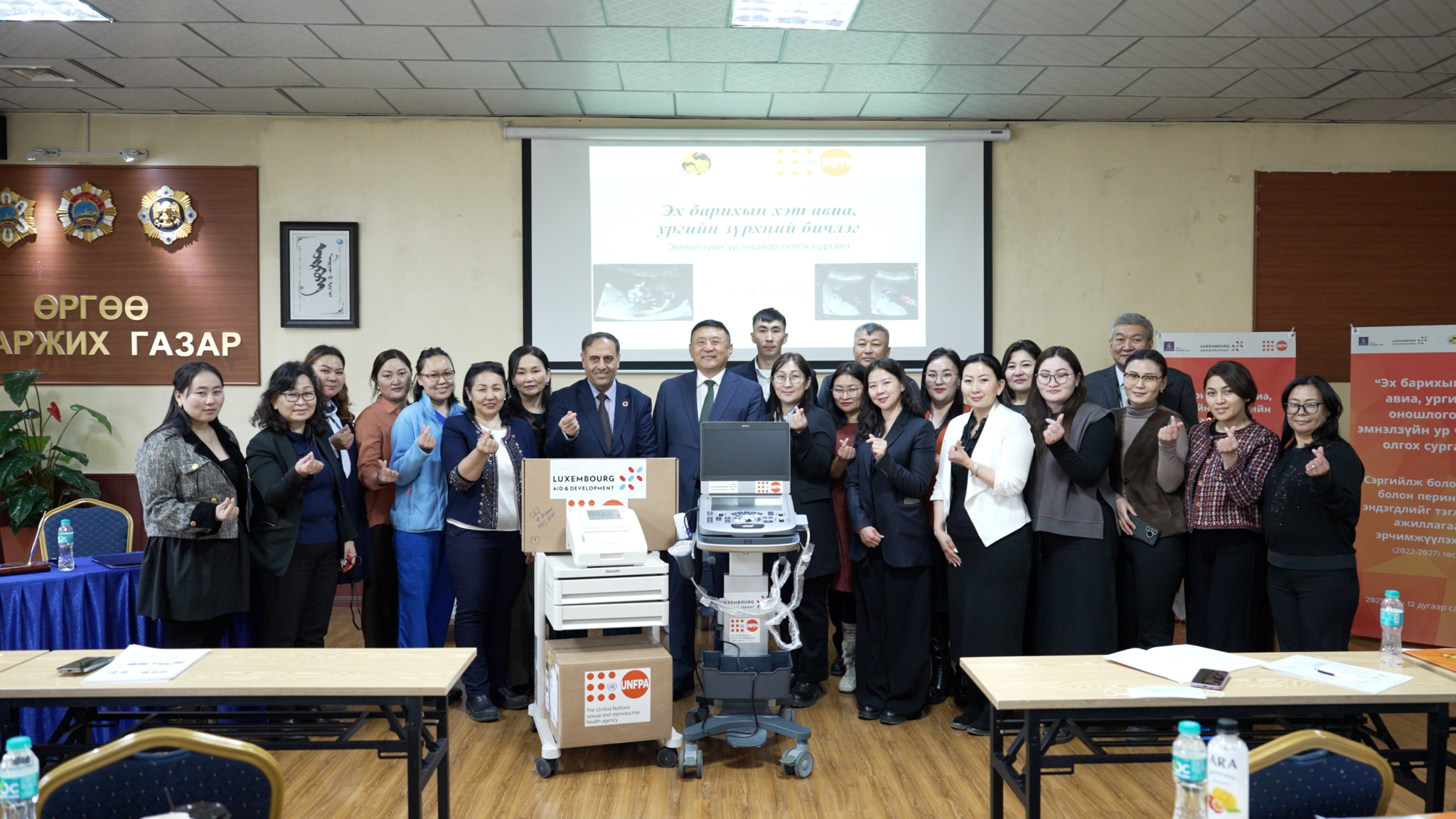 Эрүүл мэндийн яам, НҮБ-ын Хүн амын сан, Люксембургийн Засгийн газрын хамтарсан санхүүжилтээр хэрэгжүүлж буй “Сэргийлж болох эхийн болон перинатал эндэгдлийг тэглэх үйл ажиллагааг эрчимжүүлэх нь” төслийн хүрээнд 10 аймгийн 20 сумын эрүүл мэндийн төв, алслагдсан 2 дүүргийн өрхийн эрүүл мэндийн төвүүдэд нийт 1 тэрбум 864 сая төгрөгийн үнэ бүхий 22 зөөврийн ЭХО, 22 ургийн зүрхний бичлэгийн аппаратыг хүлээлгэн өгөв. Уг тоног төхөөрөмж дээр хэрхэн ажиллах талаар онол практик хосолсон 5 хоногийн сургалтыг Нийслэлийн Өргөө амаржих газарт зохион байгуулж байна.