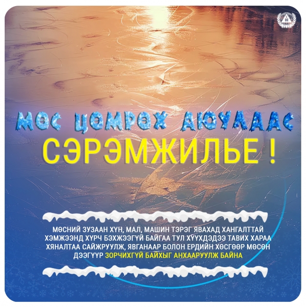 Цаашид цаг агаарын хүйтрэлтэй уялдан мөсний зузаан нэмэгдэх хэдий ч нуурын толио болон гол мөрний нийт уртын дагууд харилцан адилгүй, мөсний даац хүн, мал, тээврийн хэрэгсэл явахад хангалттай хэмжээнд хүрч бэхжээгүй байгаа тул цаг хожих, зам товчлох зорилгоор мөсөн дээгүүр явах болон авто тээвэр хийхгүй байхыг онцгойлон анхааруулж байна.