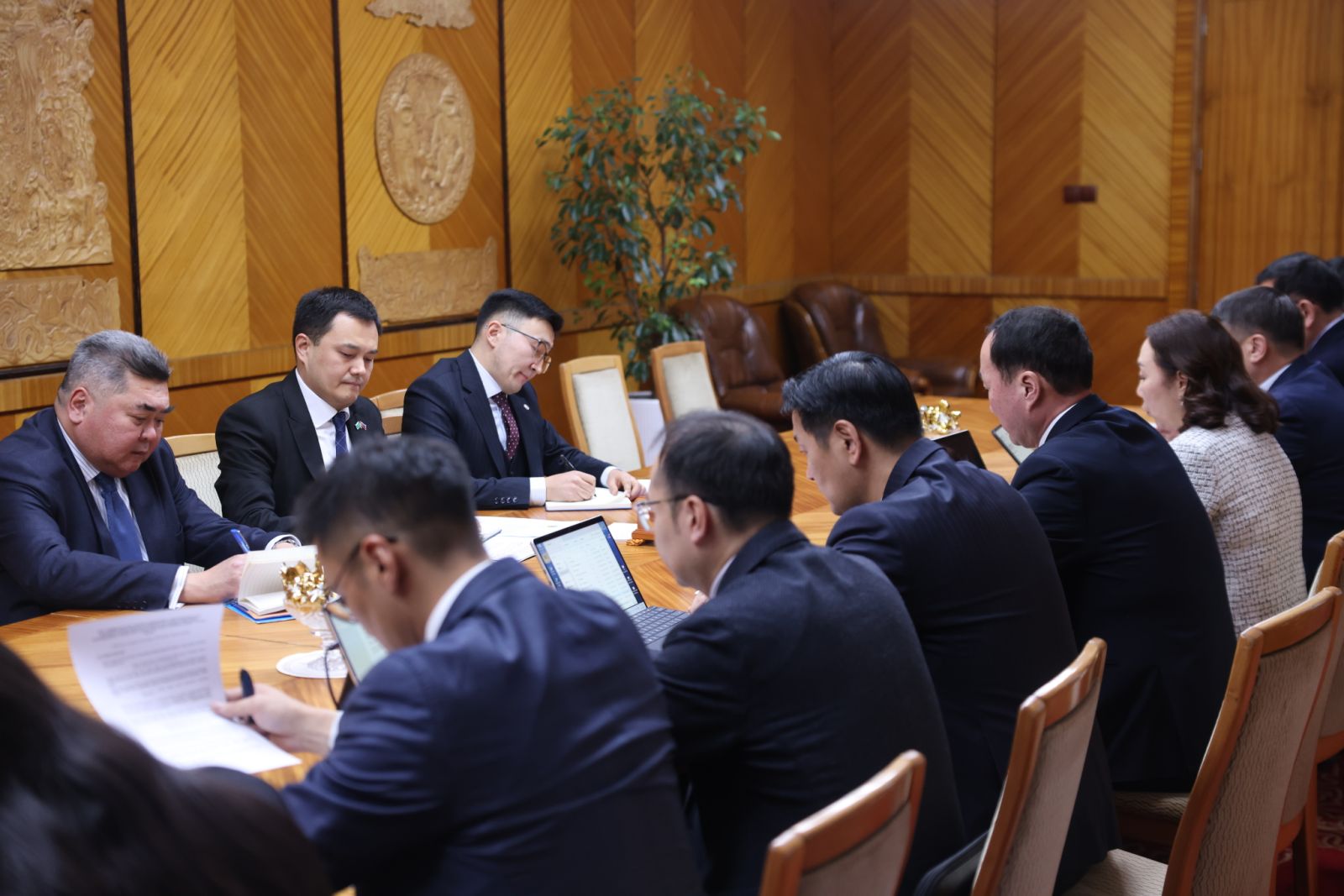 Уулзалтад Улсын Их Хурал, Засгийн газрын гишүүн, Гэр бүл, хөдөлмөр, нийгмийн хамгааллын сайд Т.Аубакир, Улсын Их Хурлын гишүүн, Монгол-Казахстаны парламентын бүлгийн дэд дарга, Х.Жангабыл, Улсын Их Хурлын гишүүн, Монгол-Казахстаны парламентын бүлгийн гишүүн С.Зулпхар нар байлцав.