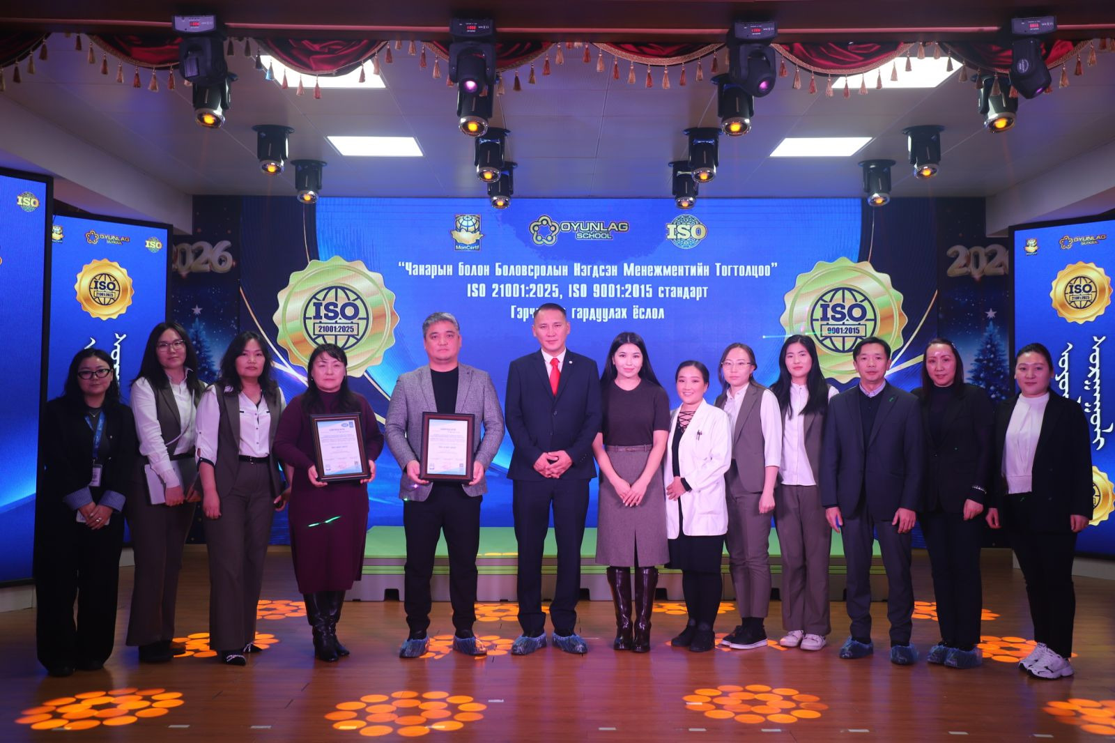 Оюунлаг сургууль ISO 21001:2025 боловсролын байгууллагын чанарын стандартыг Монгол Улсад анх удаагаа мөн ISO 9001:2015-ын Чанарын менежментийн тогтолцолцоо стандартуудыг амжилттай нэвтрүүлэн хэрэгжүүлсэн гэрчилгээг МонСерт тохирлын үнэлгээний байгууллагаас зүгээс гардуулан өглөө.
