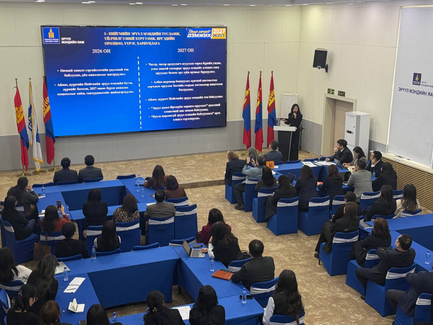 “Эрүүл мэндийг дэмжих жил – 2027” төлөвлөгөөг боловсруулахдаа “Алсын хараа-2050” Монгол Улсын урт хугацааны хөгжлийн бодлого, “Монгол Улсын Засгийн газрын 2024-2028 оны үйл ажиллагааны хөтөлбөр” дэх эрүүл мэндийн салбарын хөгжлийн зорилтуудтай уялдуулсан гэдгийг танилцуулав.