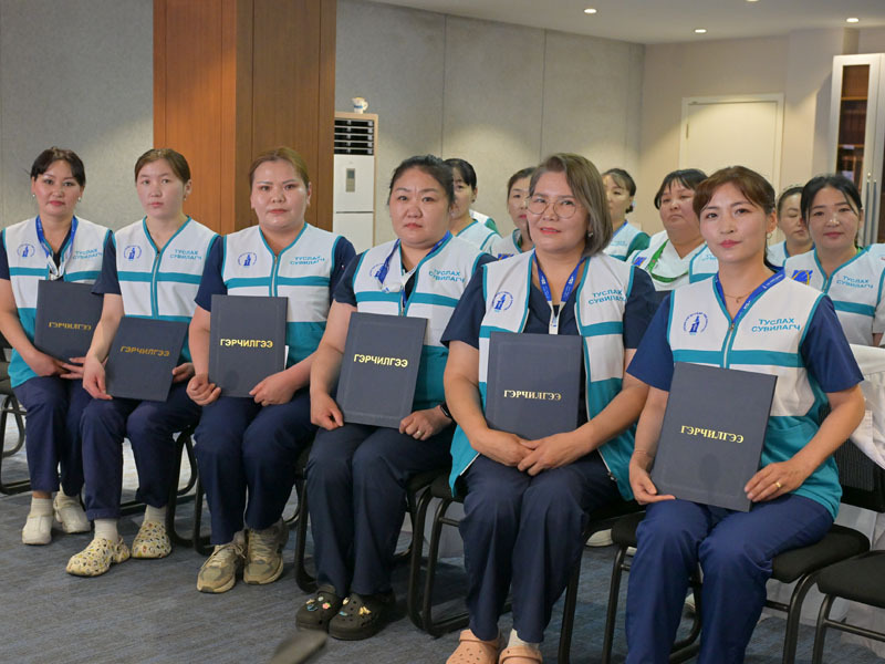 Туслах сувилагчийн чадавхжуулах сургалтын батлагдсан хөтөлбөрийн хүрээнд онолын хичээл 12 цаг, дадлага хичээл 148 цагийн сургалтад суралцсан туслах сувилагч нарт “Чадавхжуулах ” гэрчилгээг гардууллаа. Суралцагчид сургалтын хугацаанд гурван эмнэлгээр тойролт хийж, асаргаа сувилгааны төрөл, өвөрмөц онцлог үйл ажиллагаатай танилцаж, туршлага солилцон, ажлын байран дээр бодитой, үр дүнтэй сургалт болсон талаарх сэтгэгдлээ илэрхийлж байв.