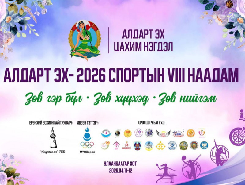 “Зөв гэр бүл-Зөв хүүхэд-Зөв нийгэм” уриан дор эмэгтэйчүүдийн эрүүл амьдралын хэв маягийг дэмжих, идэвхтэй хөдөлгөөн, спортыг хөгжүүлэх, Олимпизмыг түгээн дэлгэрүүлэх зорилготой “Алдарт Эх-2026” спортын VIII наадам дөрөвдүгээр сарын 11-12-ны өдрүүдэд Улаанбаатар хотноо зохион байгуулагдана.